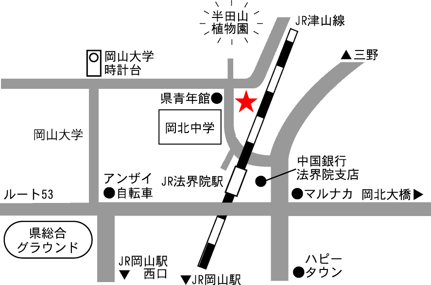 ■鉄道 JR津山線 岡山駅から1区間のJR法界院駅下車 徒歩2分